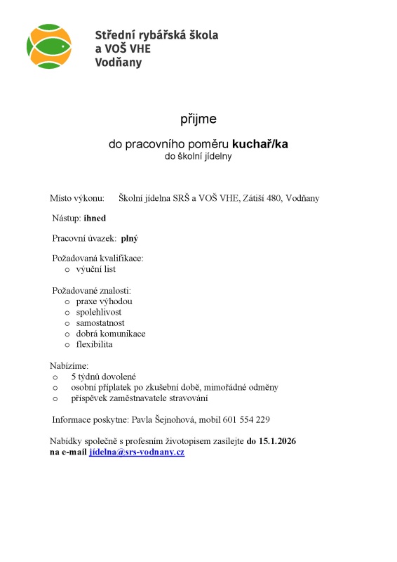 Nabídky společně s profesním životopisem zasílejte do 15.1.2026 na e-mail jí#delna%z%srs-vodnany.cz