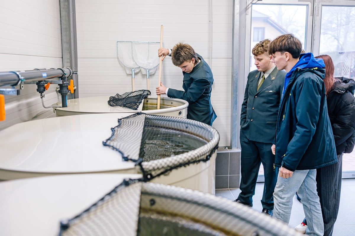 Tradiční rybníkářství dnes naráží na ekologické limity a budoucnost oboru se stále více přesouvá k uzavřeným recirkulačním systémům. Nová učebna tento problém řeší a přináší do výuky nezávislost na počasí i přírodních vodních tocích. Uvnitř se nachází recirkulační systém pro chov ryb, líheň, strojovna a navazující skleník. Studenti se zde budou učit principům aquaponie, kde voda bohatá na živiny z rybích nádrží slouží jako přírodní hnojivo pro pěstování zeleniny. V nádržích se tak vedle obvyklých kaprů objeví i dravé ryby jako štiky, sumečci afričtí nebo pstruzi, zatímco v hydroponické části porostou rajčata a bylinky. Systém počítá i s využitím dešťové vody, kterou bude po úpravě vracet zpět do oběhu.