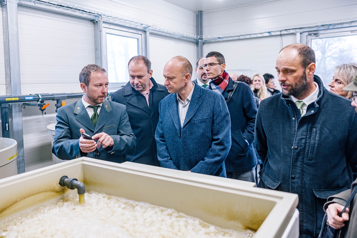 pro recirkulační a aquaponický systém chovu ryb v rámci 43. výzvy IROP 2021-2027 SŠ SC 4.1 (PR), spolufinancovaný z EU, proběhl v pátek 12. 12. za účasti pozvaných hostů.